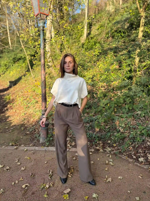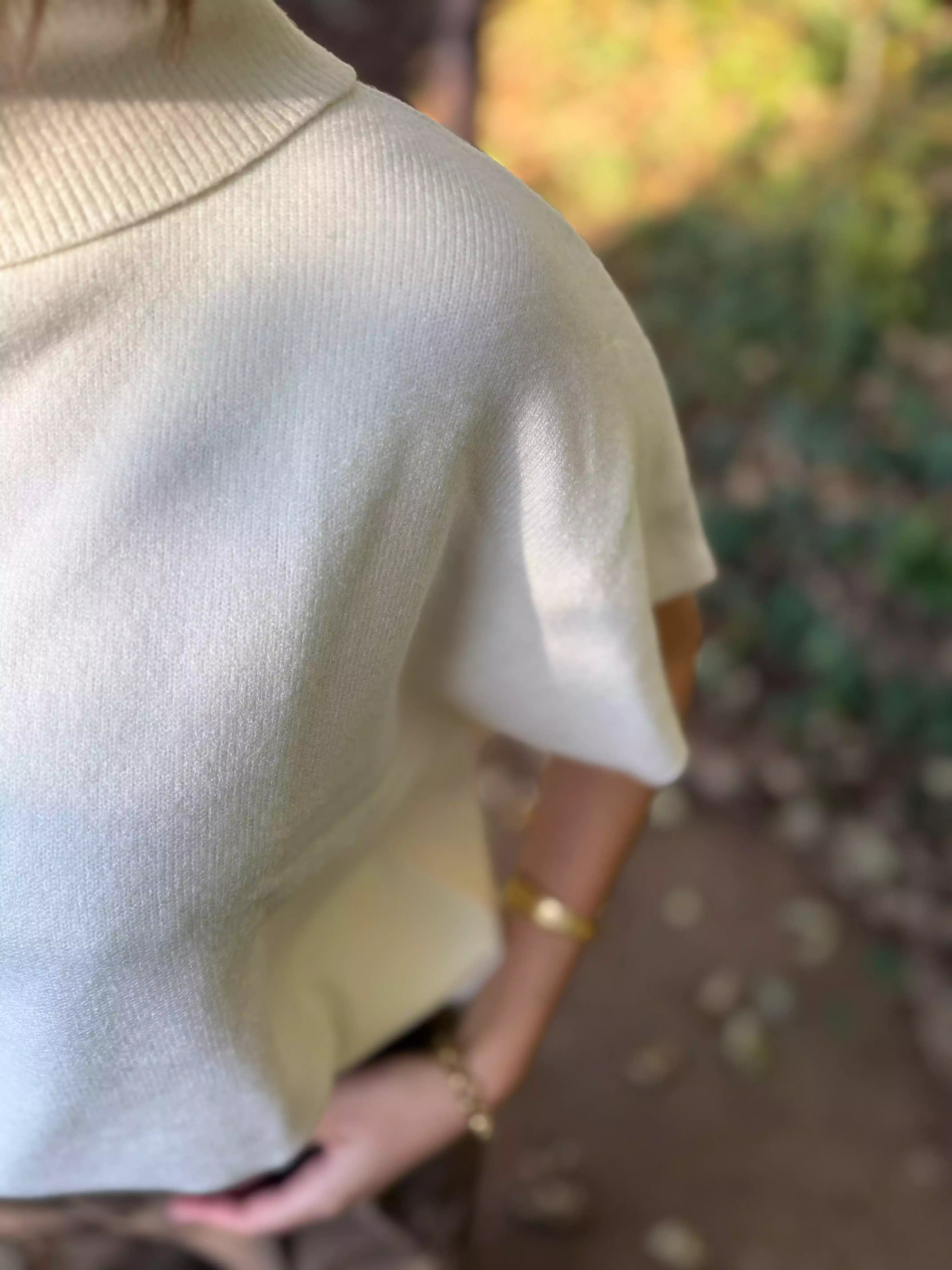 - Pull sans manche blanc col roulé